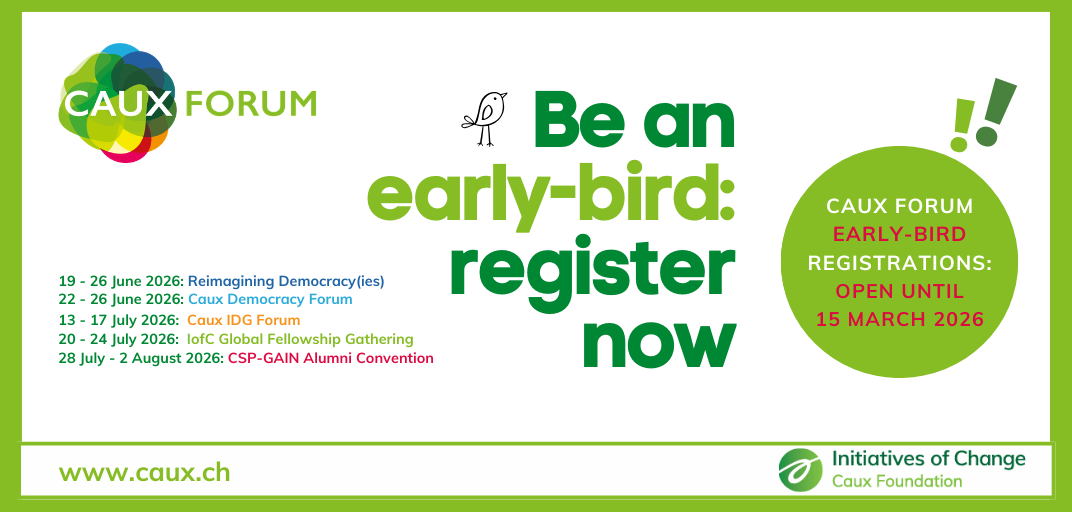 We are thrilled to invite you to the Caux Forum 2026, taking place at the Caux Palace in Switzerland where participants from all corners of the globe and walks of life come together to tackle some of today’s most pressing challenges and explore new ways to create meaningful change.