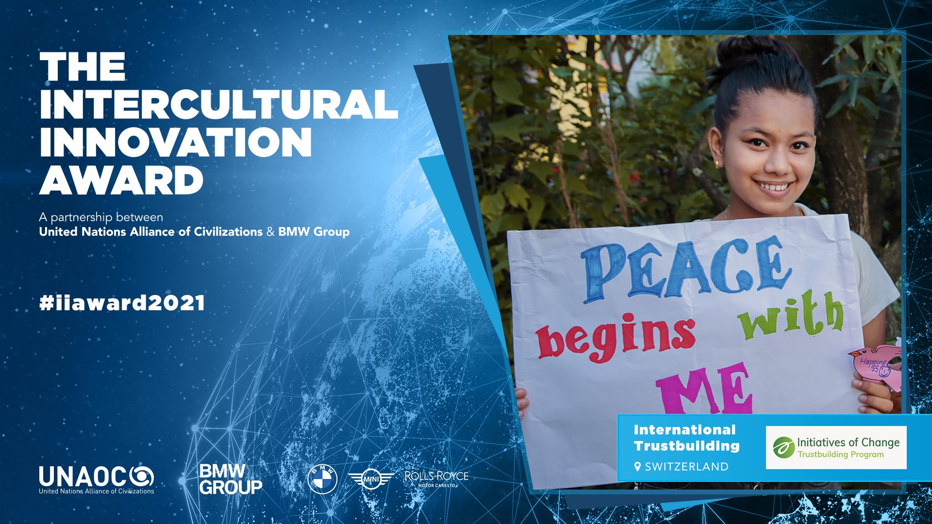 Initiatives of Change International’s Trustbuilding Program received the Intercultural Innovation Award at award ceremony during the Dubai Expo. The award is a partnership between the United Nations Alliance of Civilizations (UNAOC) and the BMW Group, with the support of Accenture.